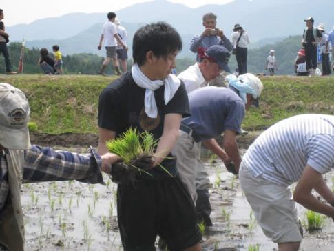 注連川の糧の代表、土井さんももちつきを。
